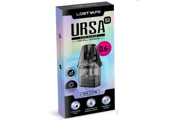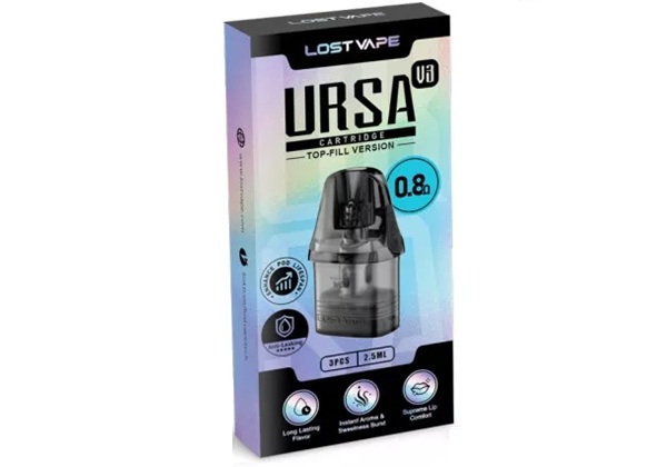Los Pods de repuesto URSA Nano de Lost Vape son cápsulas recargables originales, compatibles con los sistemas URSA Nano, URSA Pro, URSA Baby y URSA S Pod, y cuentan con un relleno lateral con tapón de silicona y una capacidad de 2 ml, disponible en 0,6 O 0,8 ohmios.